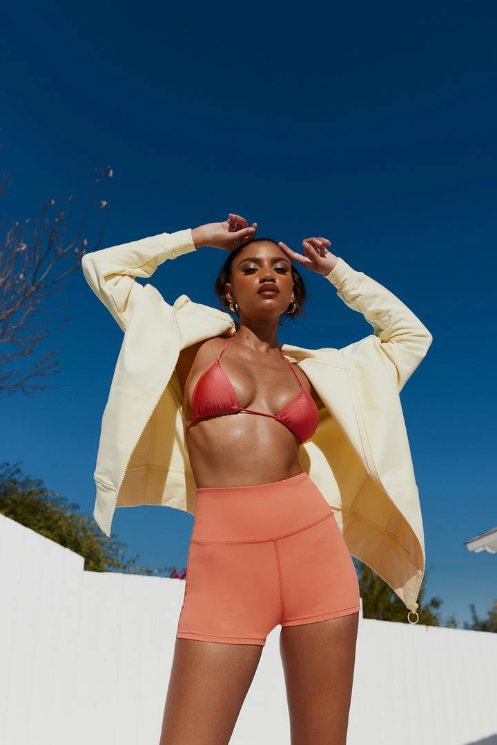 Run past every goal post and show the world what you’re capable of! To help you on your journey to greatness, give the Prana Shorts a shot. Featuring a thick waistband, a super tight + flattering fit, flatlock seams for utmost comfort and a perforated quick-drying sports jersey to absorb sweat and unwanted wet patches. These shorts adorn a colourful coral hue, so wear this with any sports top to add a pop of fun! Style yours with a sports crop.
