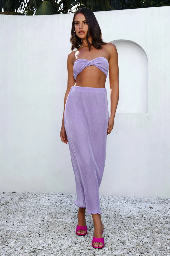 Ace the Balancing Act with this marvel of a look. Stun, dazzle and always own the spotlight. This maxi skirt features a bodycon fit with a pleated detail all over.Β Style yours with the matching crop and mules.Β