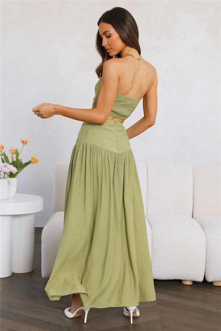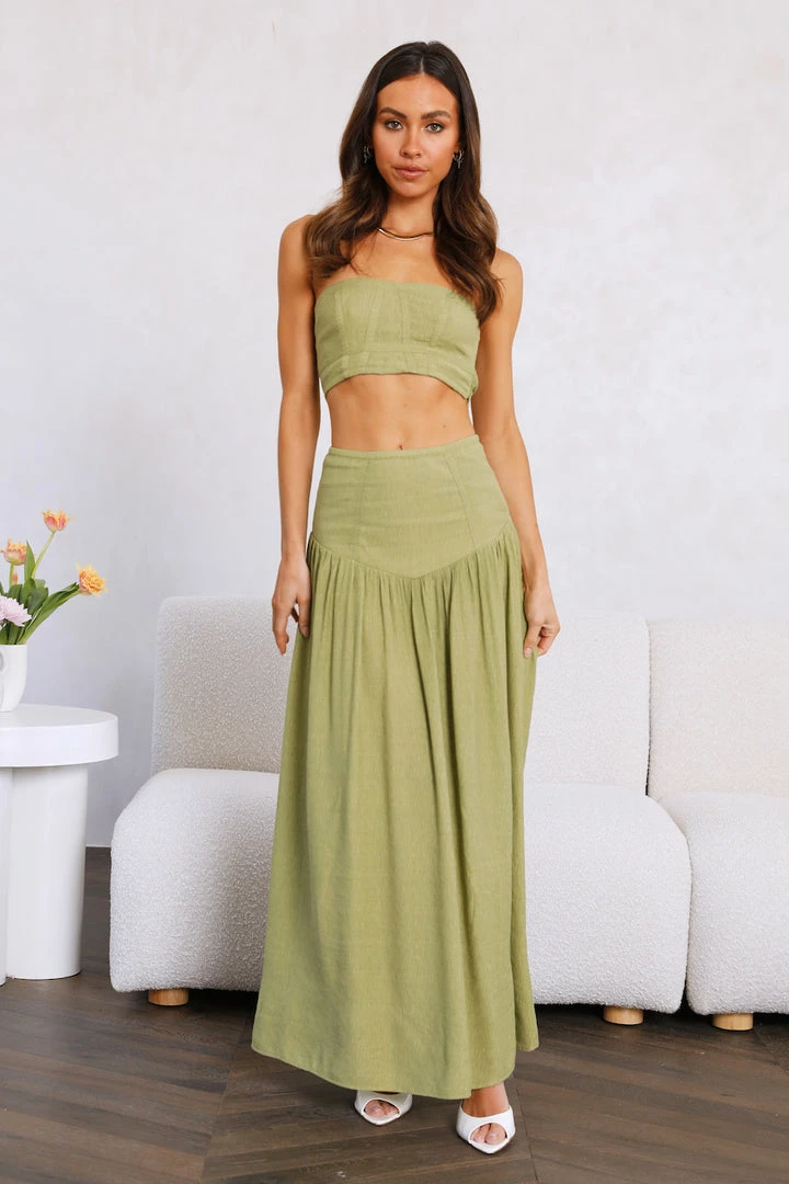 Call Me Away to a better place where the grass is ACTUALLY greener. We want the best and nothing less here! So, we brought you this adorable crop. Featuring a bandeau design. Style yours with the matching skirt and mules.Β