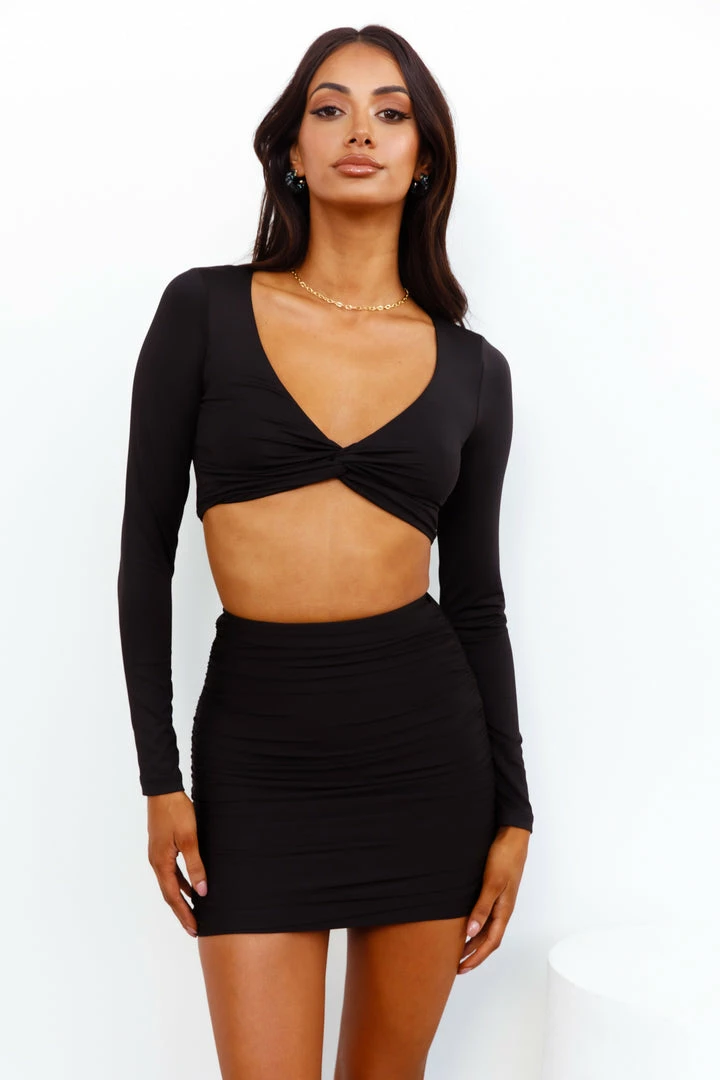 Be the sweetest thang around in this sexy mini. The Cookies And Cream Skirt features a bodycon fit with ruching on the sides. Style yours with the matching crop and mules.Β
