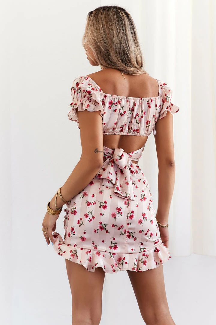 We’re swiping right for our Fairytale Come True Skirt! The perfect summer essential, this floral skirt boasts a dainty print, ruched details, and a ruffled hem for a picnic-ready look. Style yours with the matching crop and neutral wedge heels!