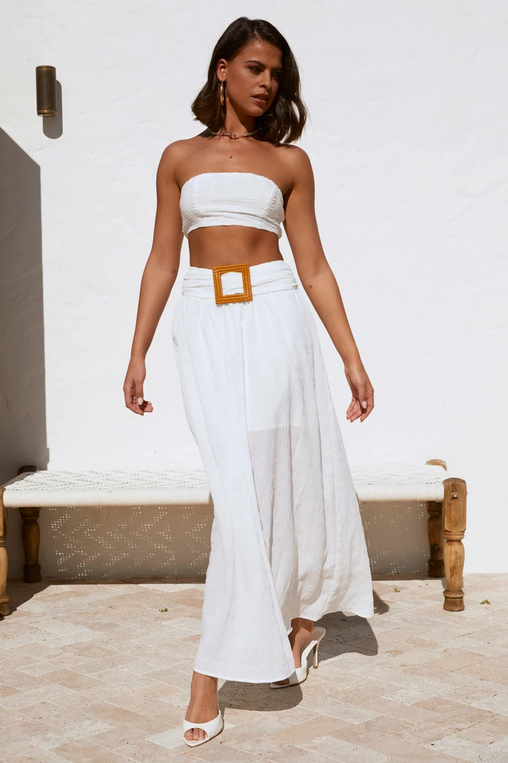 Boho-chic queens RISE! This crop is perfect for any day you want to feel like a fairy. It’s got all the modern style you love, but with a little bit of that old-world charm. This crop is in a bandeau style + the fabric is so soft and flowy, that you’ll be able to dance all day long without a single worry.Β Style yours with the matching skirt and mules.Β