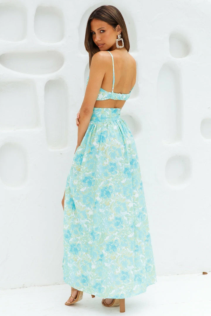 Take on the world in the cutest way. Glow in the Laureno maxi skirt which features a bold print and a flowy design.Β Style with the matching crop and mules.Β