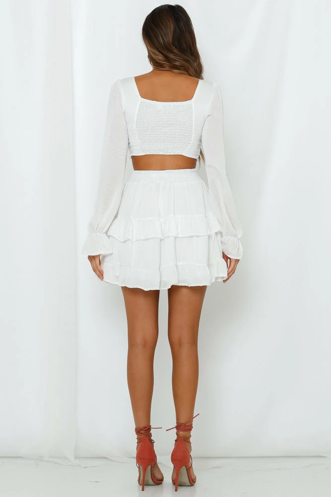 Did you say ‘summer holiday’? We’re getting some serious wanderlust vibes from our On Screen Crop. This gypsy looking crop makes the perfect beachside essential with its scoop neckline gathered bust, bouffant sleeves, and comfortably shirred back. This top works fantastically with your selection of denim or with its matching mini skirt!
