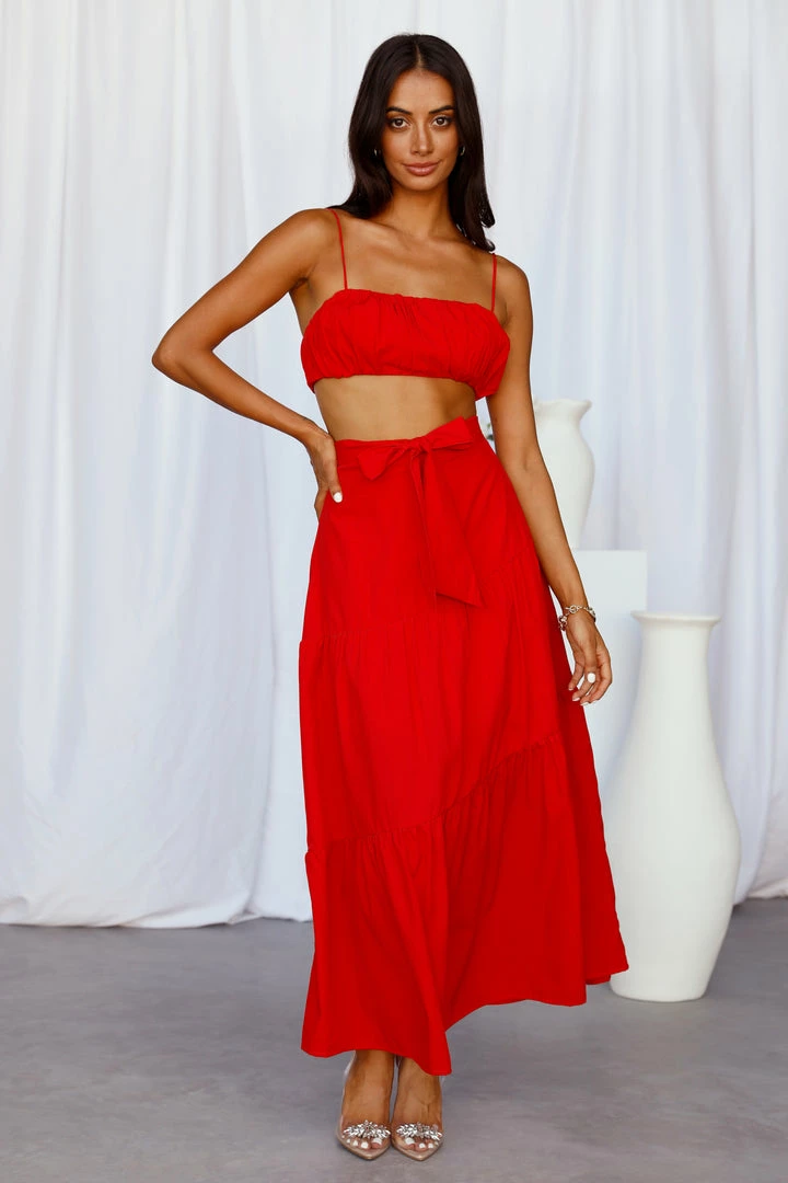 This is Our World, so make sure you’re the main character. Try out this maxi; which has a subtle tier detail and a front tie. Style yours with the matching crop and mules.Β
