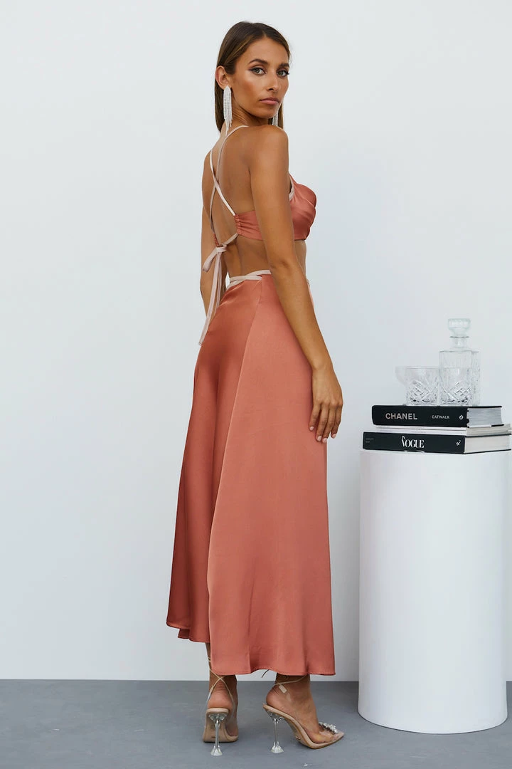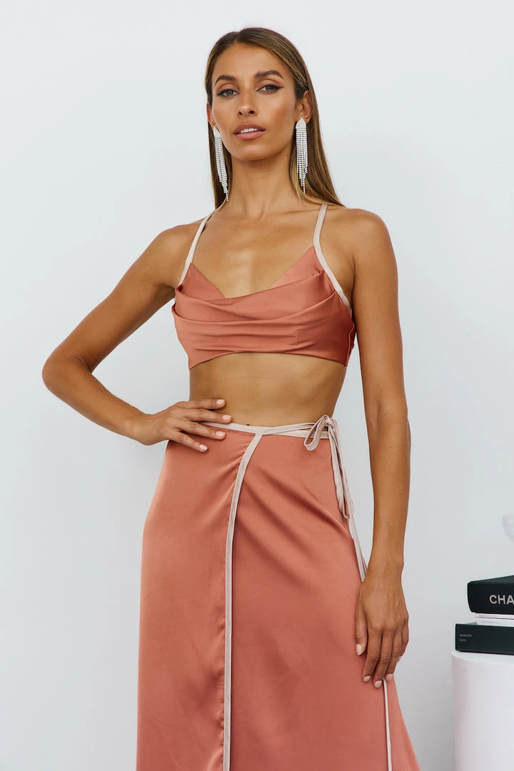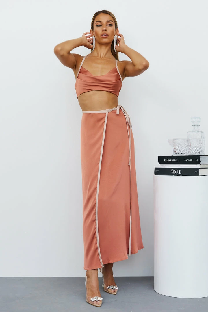 No More Waiting for the next day to start something – you got all the time rightnow girl!Β So try out this maxi; which has a wrap design with a side slit feature. Style yours with the matching crop and mules.Β