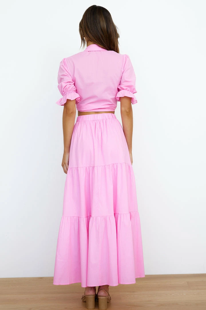 The Stylist Set is an essential for your new season wardrobe babe. Featuring a linen feel material, slightly puffy sleeves and an extra relaxed skirt. Wear with loose curls and sandals.