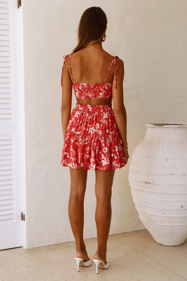 We are waiting for beautiful moments like this With You. Adorn the cutest of crops like this one which features a stretchy back and tie-up shoulder straps. Style yours with the matching skirt and mules.Β