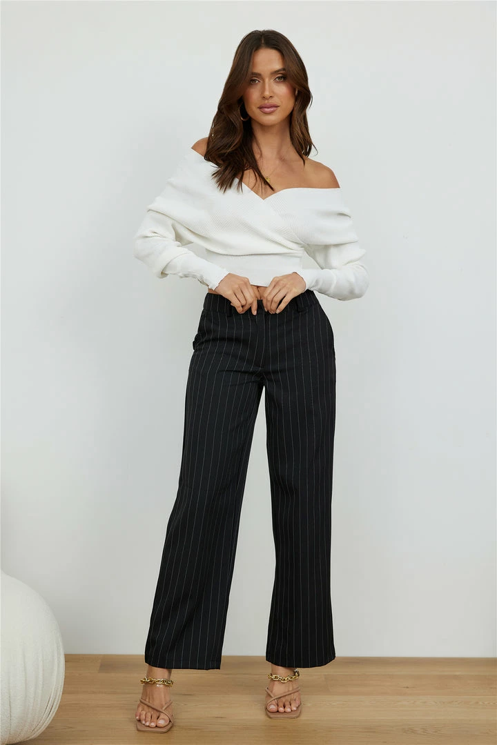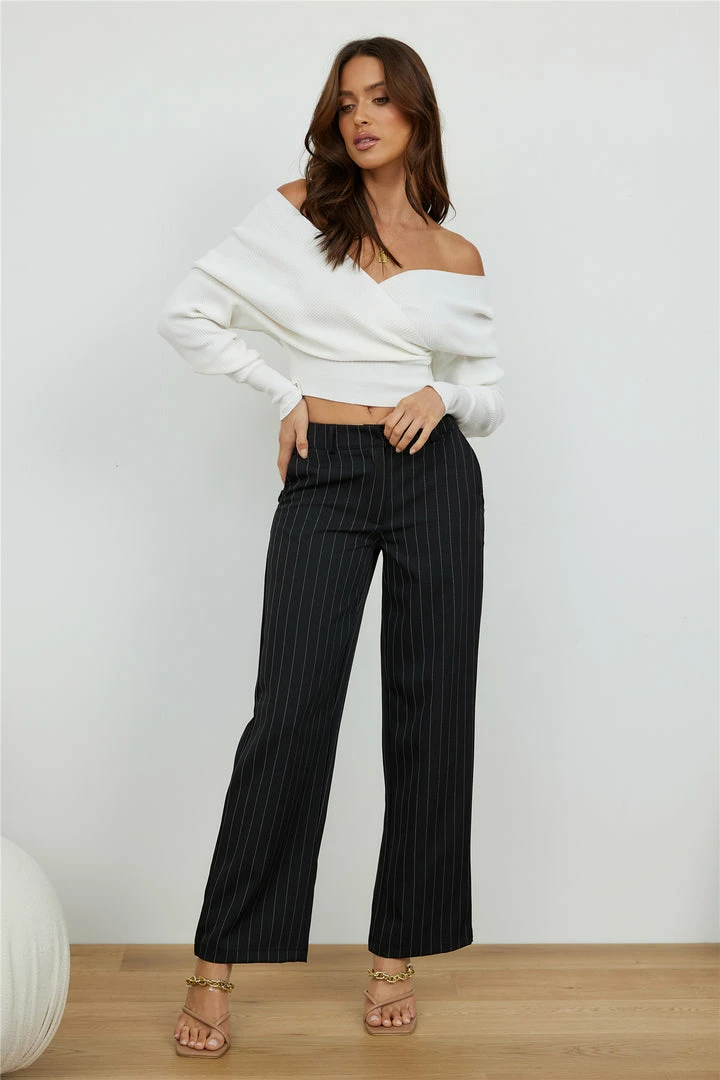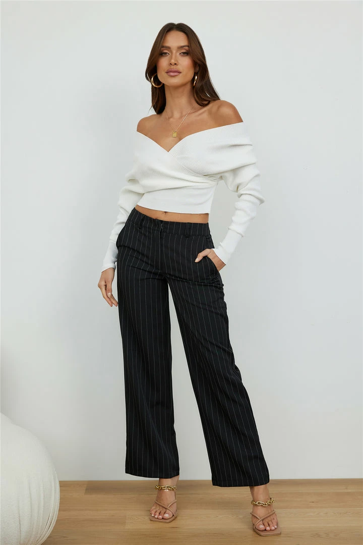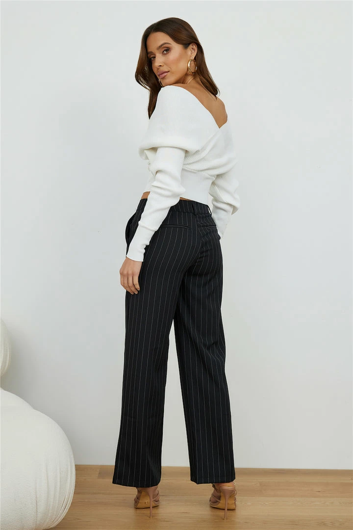 March into any room with confidence in the Yours Faithfully Pants. Featuring a retro-inspired stripe pattern and wide-legged design. Style yours with a cropΒ and heels.Β