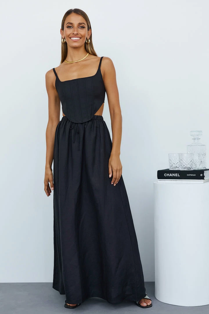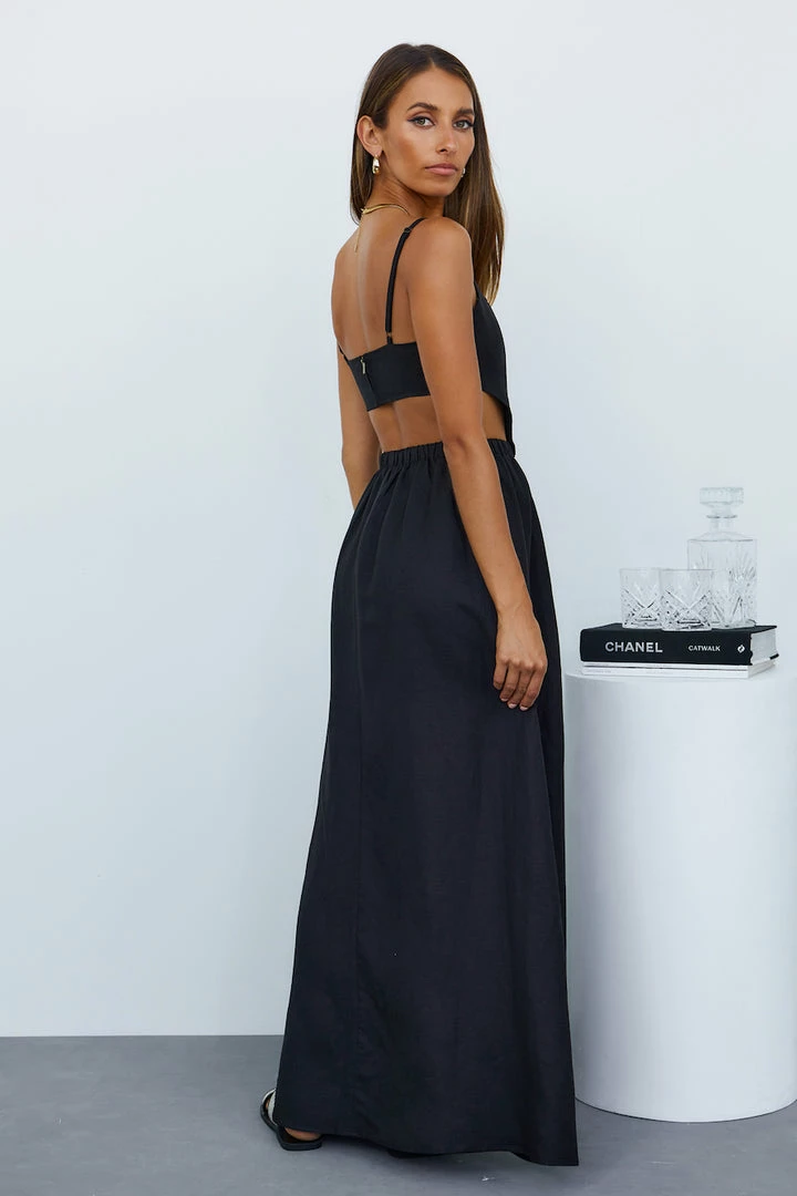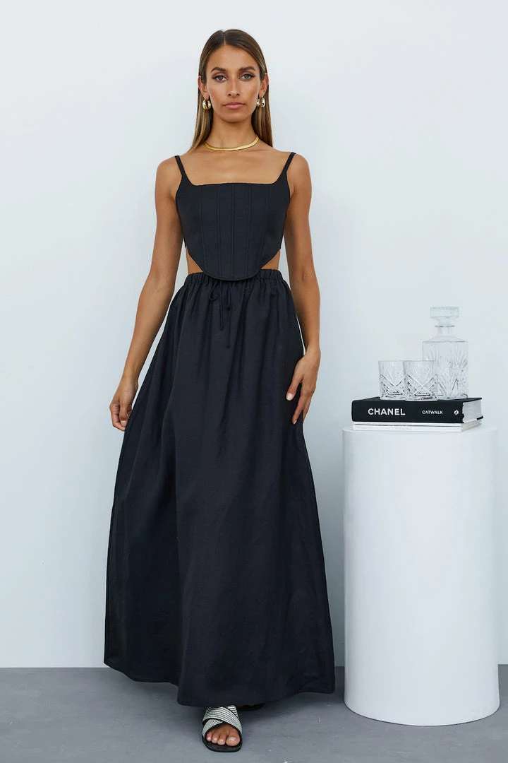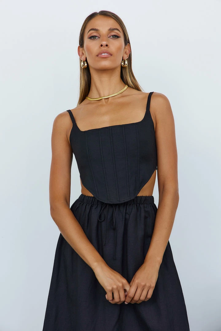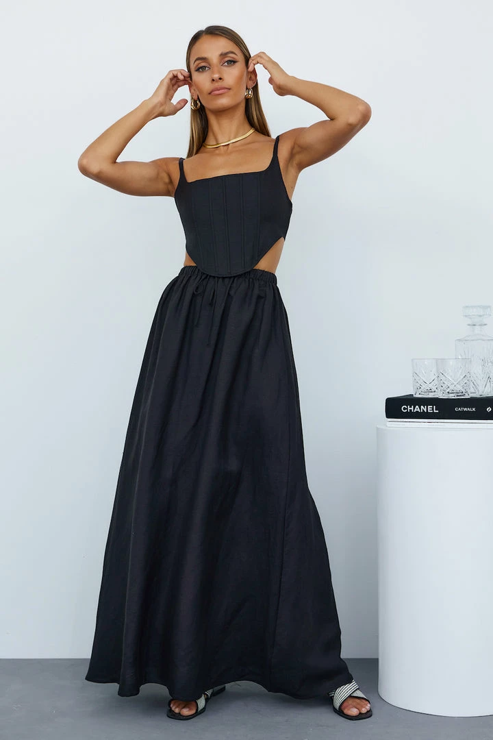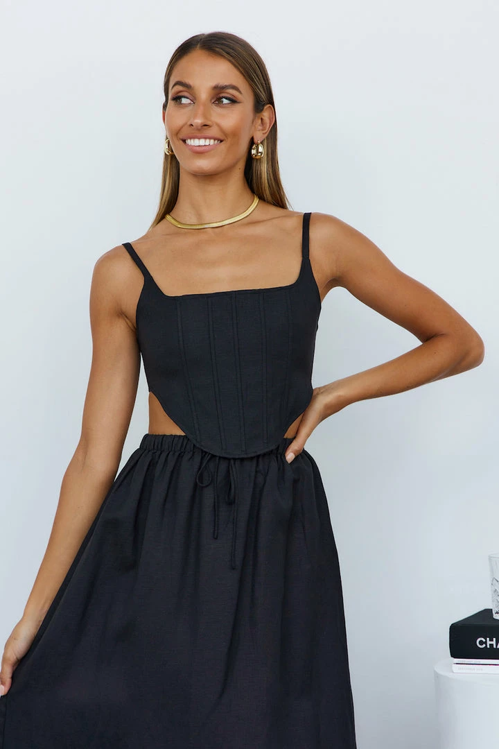 Be the sleekest girl around with the Alexandria Maxi Skirt. Bring high fashion to your gram. This skirt features a long flowy skirt with a waist drawstring. Style yours with the matching crop and heels.Β