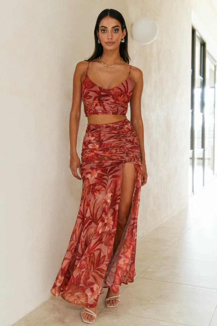 Read the stars and embrace your sign in the sassiest way. The Capricon Crop features a plunging neckline with ruching all over! Style with the matching skirt and mules.Β