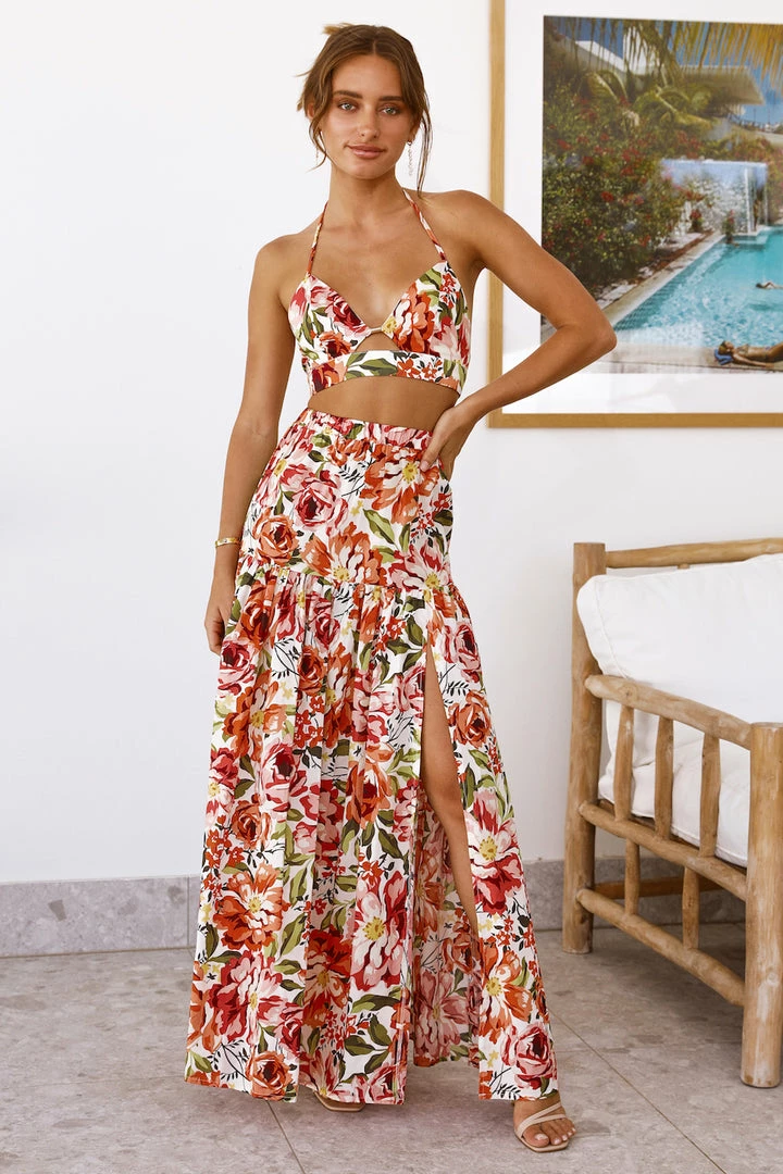 Frolic through the fields in complete cuteness with the Madeira Crop Top. Featuring a tie-up halterneck with a gold clasp closure. Style yours with the matching skirt, mules and waves.Β