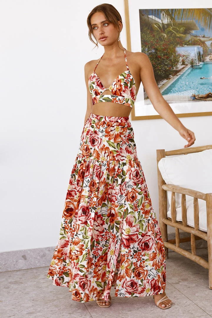Frolic through the fields in complete cuteness with the Madeira Maxi Skirt. Featuring a long length and a fun side slit. Style yours with the crop, mules and waves.Β