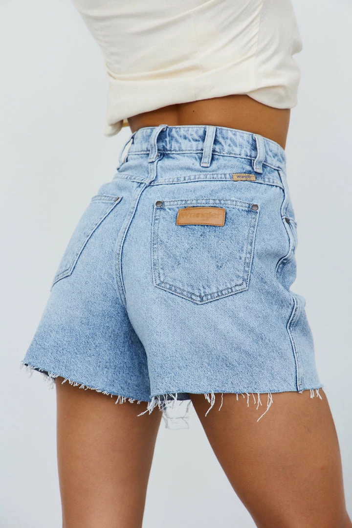 The perfect staple for all of the summer – The Hi Bells Short.Β Featuring a short length, slightly distressed hem, a five-pocket design, and the iconic leather logo to the waist-back. Pair with a crop and nude mules.Β
